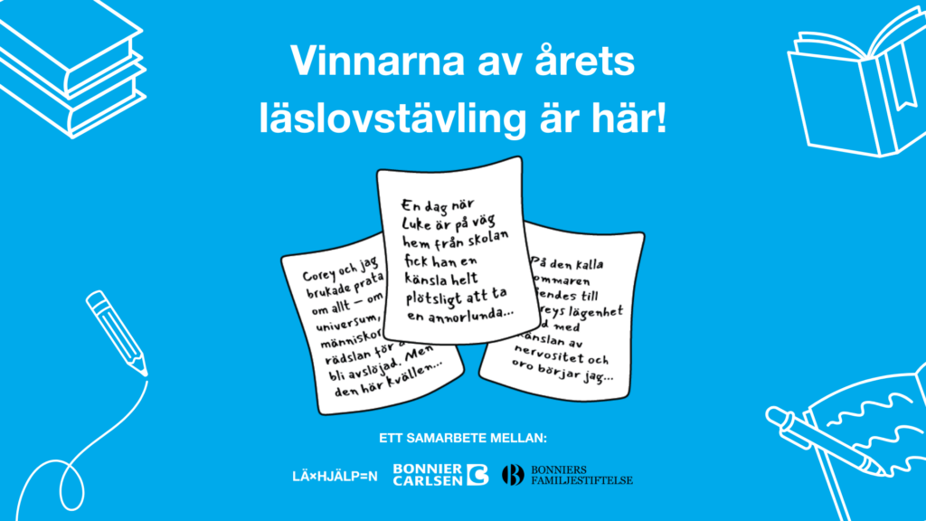 För tredje året i rad har Stiftelsen Läxhjälpen, i samarbete med Bonnier Carlsen, anordnat en läslovstävling för våra läxhjälpselever. Läslovstävlingen fungerar som en språkfrämjande aktivitet där kreativitet och fantasi står i centrum, med målet att fler unga ska få upp intresset för läsande och skrivande.